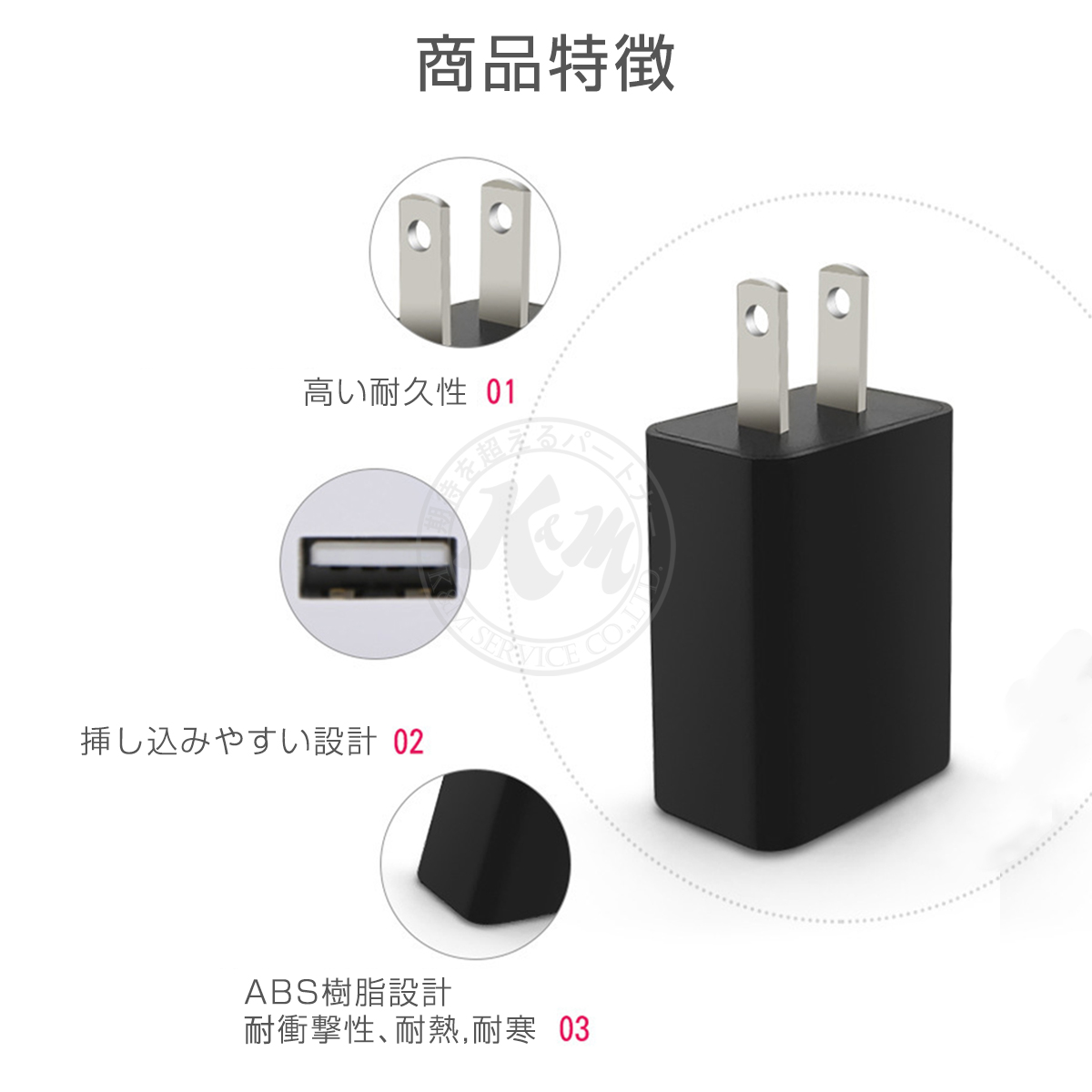 USB充電器 ACアダプター 5V 2A 黒 急速充電 スマホ充電器 USB電源アダプター iPhone Android Galaxy Xperia XS ゲーム機 防犯カメラ等対応 SDM便送料無料 1ヶ月保証 K&M