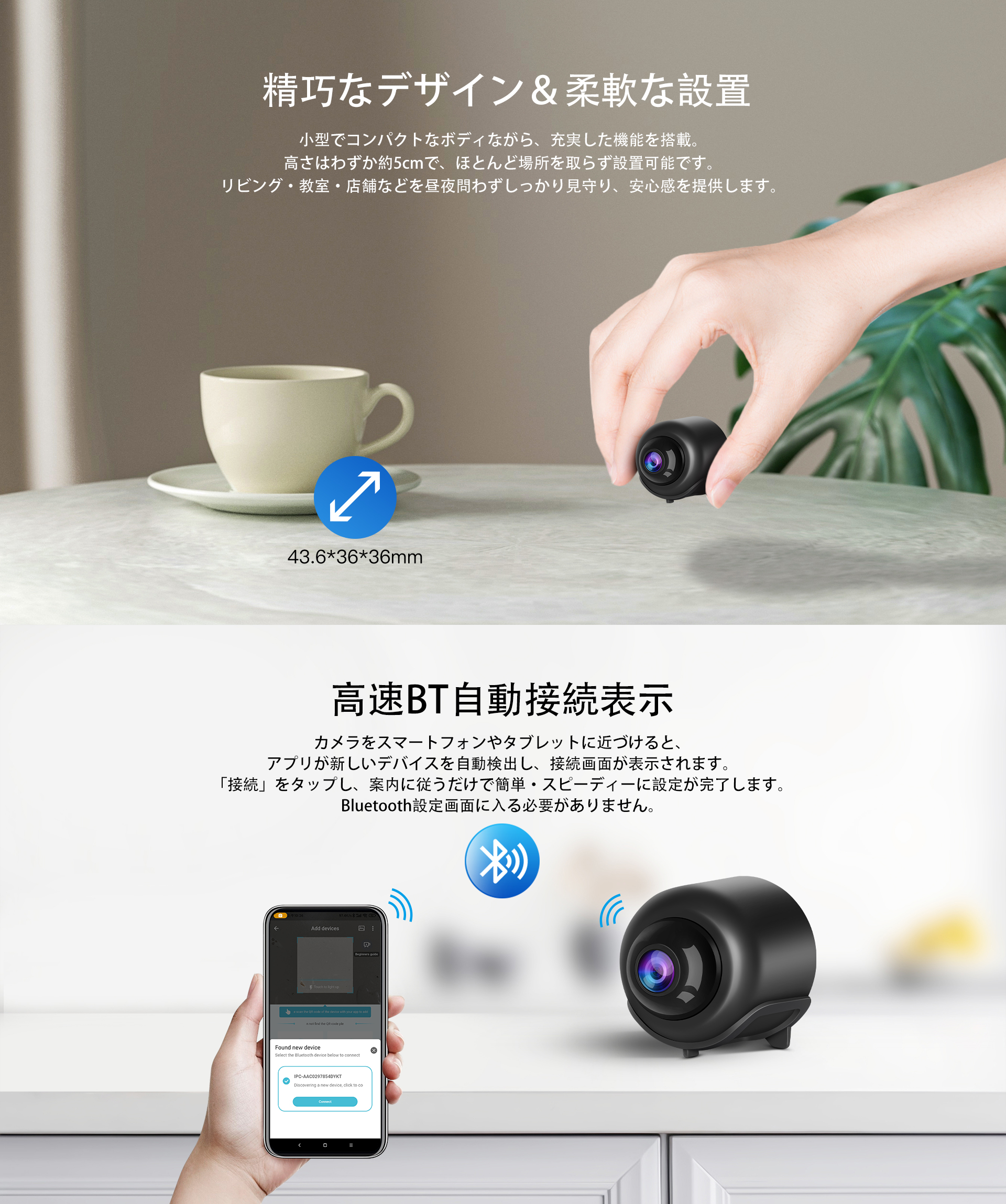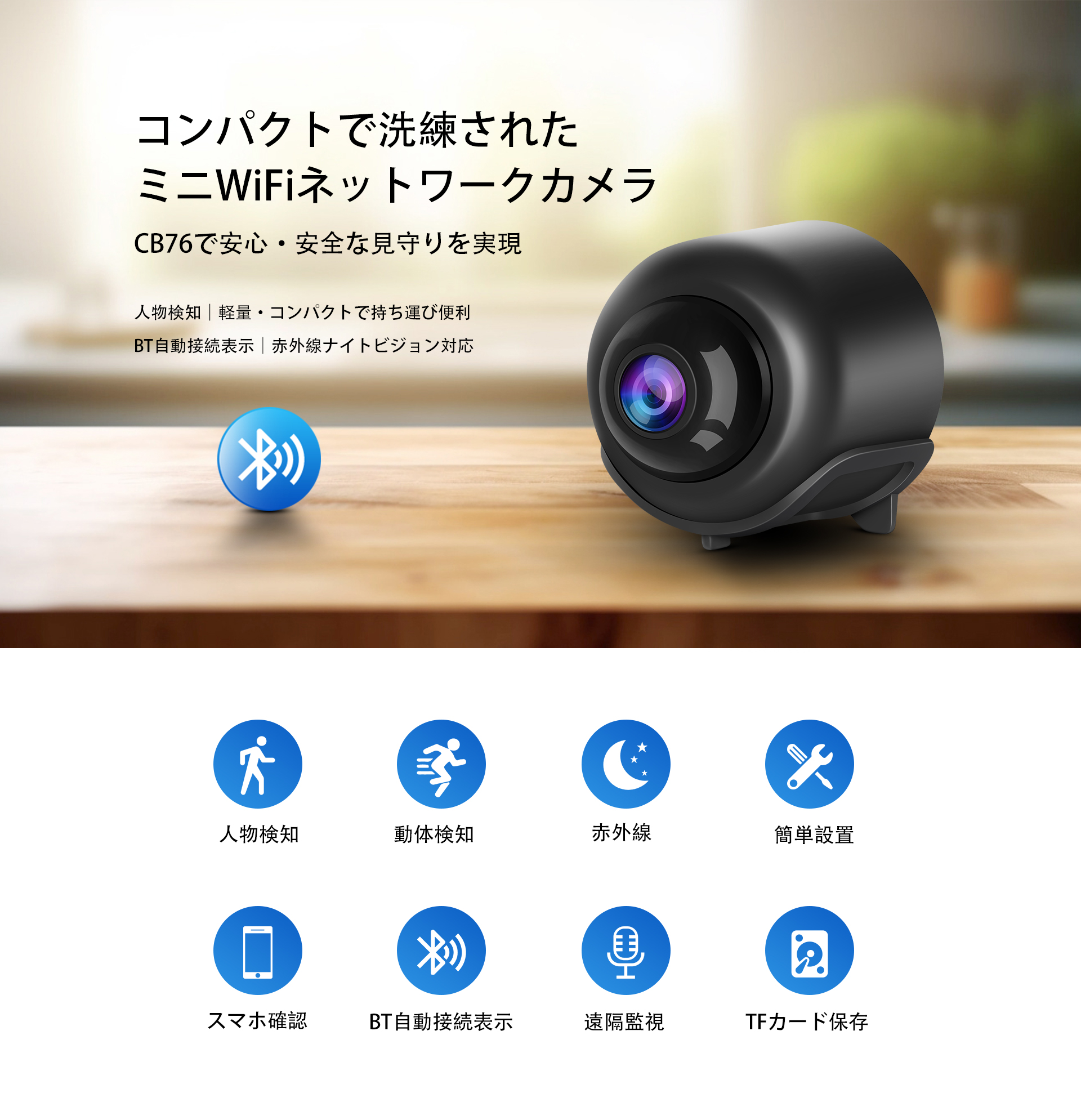 見守りカメラ CB76 1296P高画質 小型WiFi 人物検知 動体検知 ナイトビジョン 双方向音声 ペットカメラ 防犯カメラ 技適 6ヶ月保証